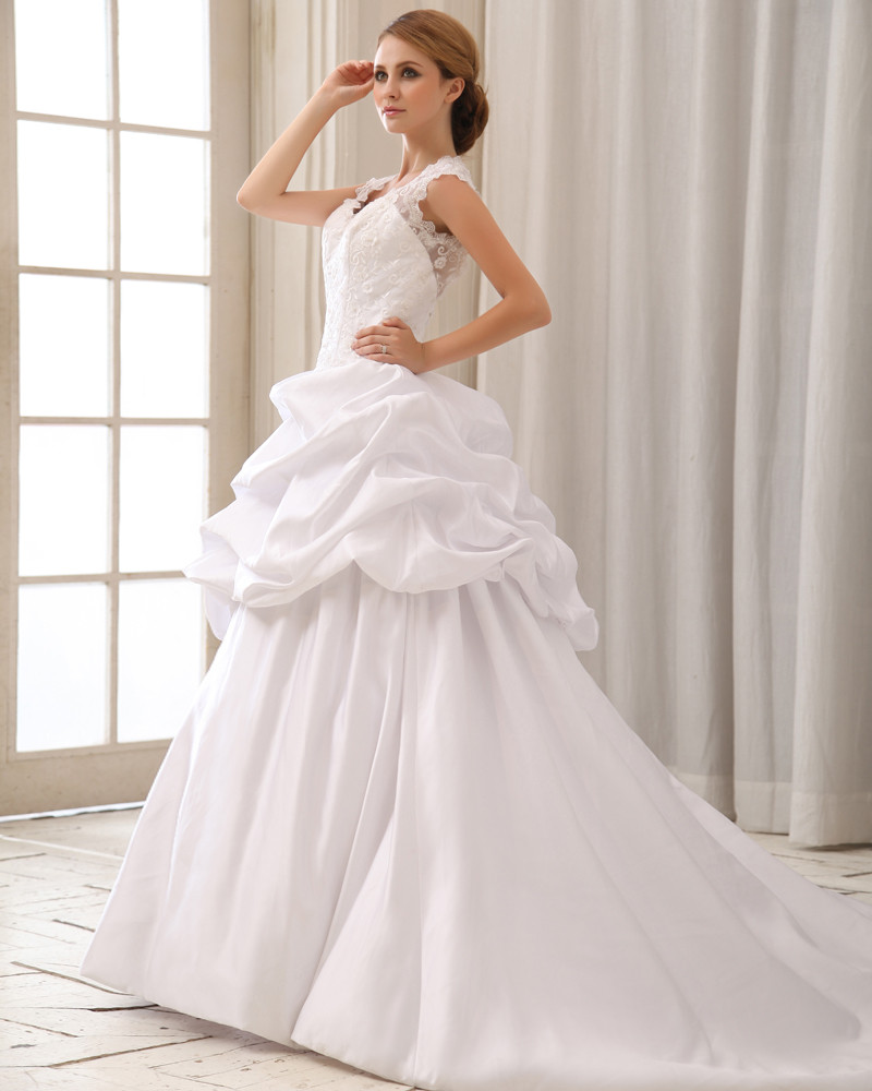 لباس عروسی عاشقانه کلاه دنده ای آستین بند گردن لباس عروسی با سوتین شکل قلب